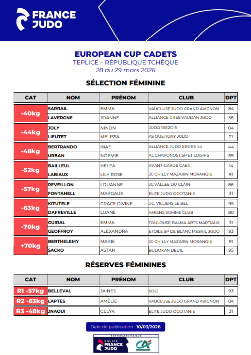 Cette performance lui ouvre également les portes de l’équipe de France cadets, avec une sélection pour l’European Cup de Teplice (République tchèque).